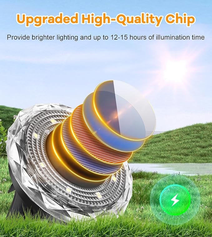 • 【Shine Bright Like a Diamond】Our solar ground lights crafted with geometric faceted surfaces mimicking premium crystal aesthetics, equipped with high quality Shatter-resistant ABS material and 8 durable LEDs provide brighter and wider lighting. With 600mAh rechargeable Battery ,the solar disk lights will work up to 12-15 hours at night after 6-8 hours charged during the day. Solar power desgin is energy efficient and environment.