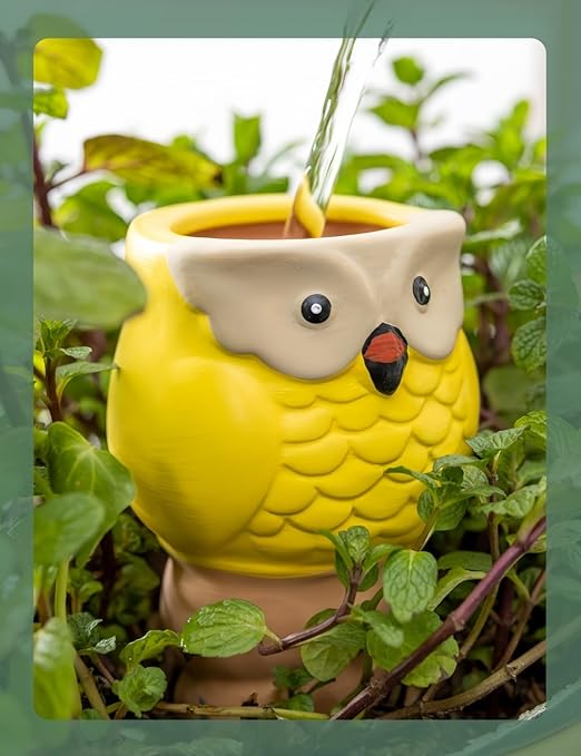 • 🦉Easy to Use: Simply soak the terracotta in water, insert self-watering spikes into the soil, and fill it up. The wide opening makes refilling easy, and the automatic plant waterer gradually releases water into the soil, keeping your plants perfectly moist without overwatering.