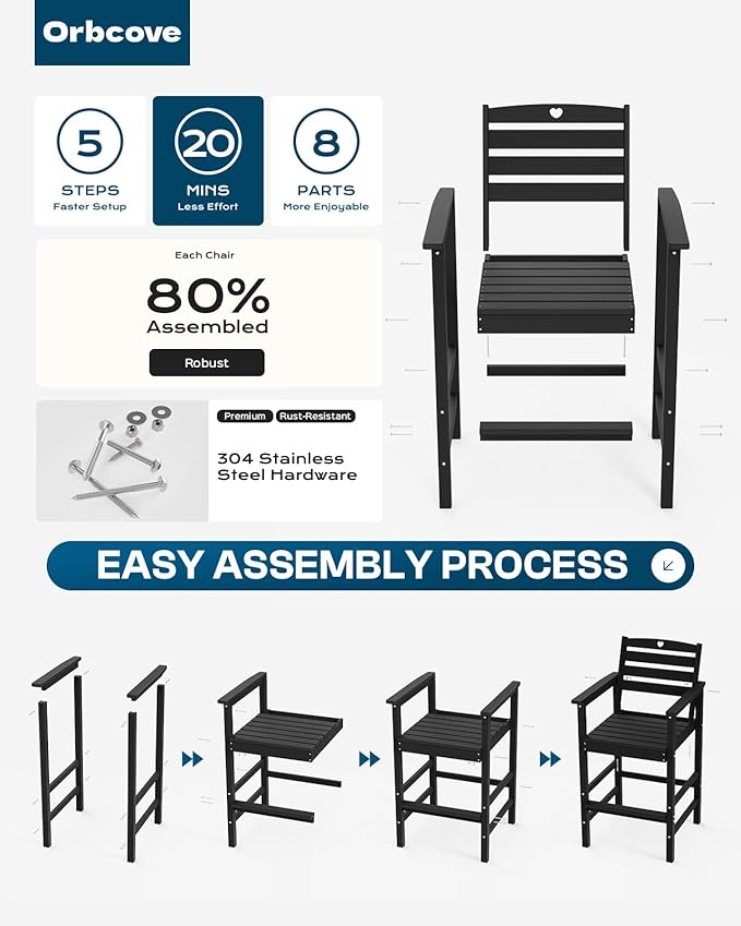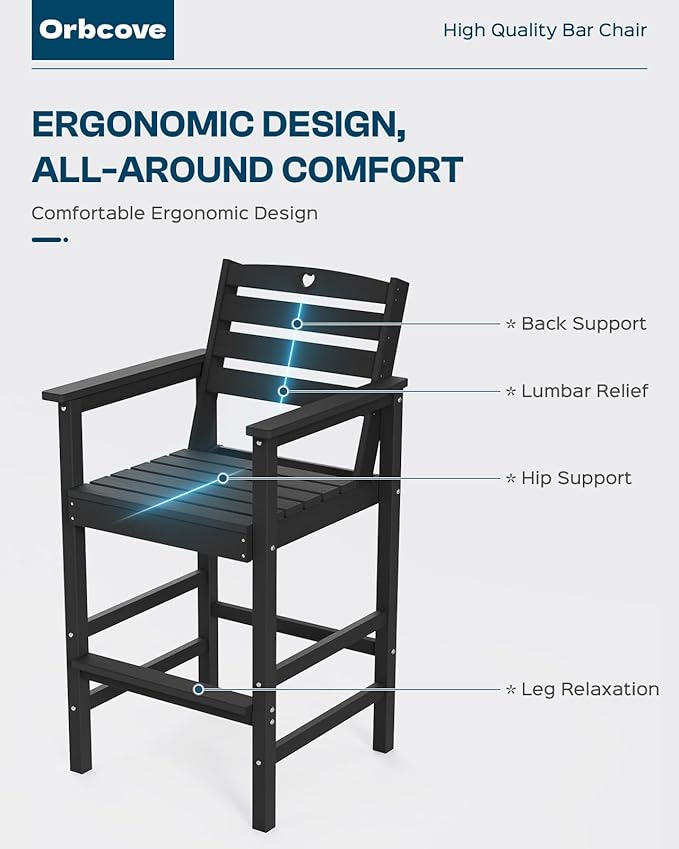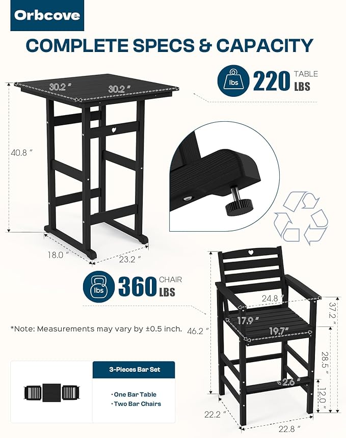 • Durable All-Weather Design: (Please note!!!Your order consists of two or three separate packages, which may be delivered at different times.) Crafted from HDPE with a natural wood grain finish, Orbcove bar table and chairs set withstands sun, rain, and wind without fading or cracking. Ideal for deck furniture, backyard furniture, or porch furniture, it’s perfect for year-round outdoor living.