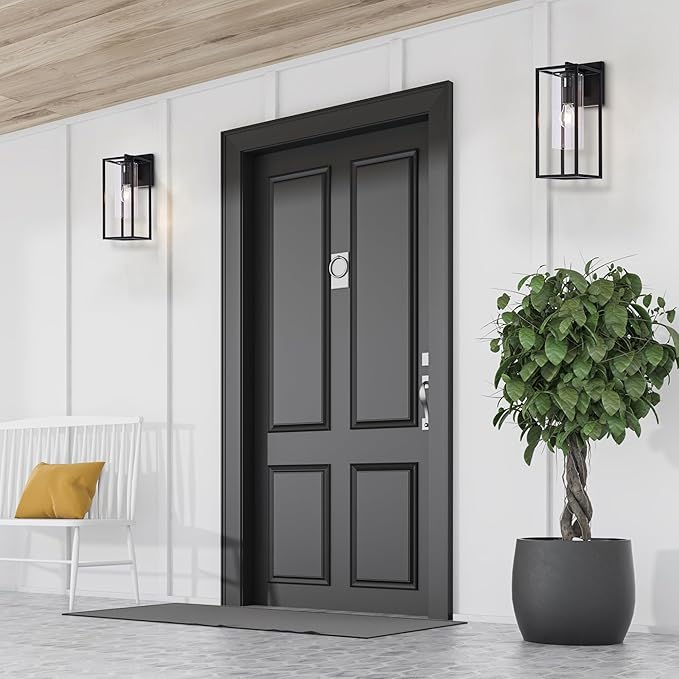 • 【Modern Outdoor Lights】Designed with clean lines and a classic matte black finish, this outdoor wall lights gives a simple yet elegant look, perfect for front doors, garages, porches, hallways, patios, and any other indoor or outdoor location.