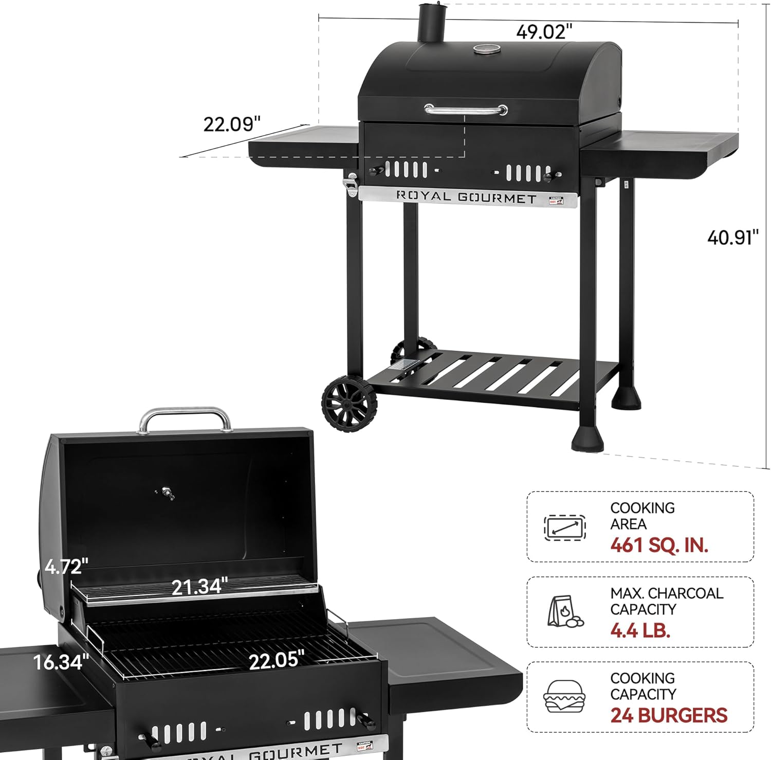 24-Inch Charcoal Grill with Foldable Side Tables, Movable BBQ Grill with 470 Sq. In. Cooking Area for Backyard, Patio and Parties, Black, CD1824EH-SC