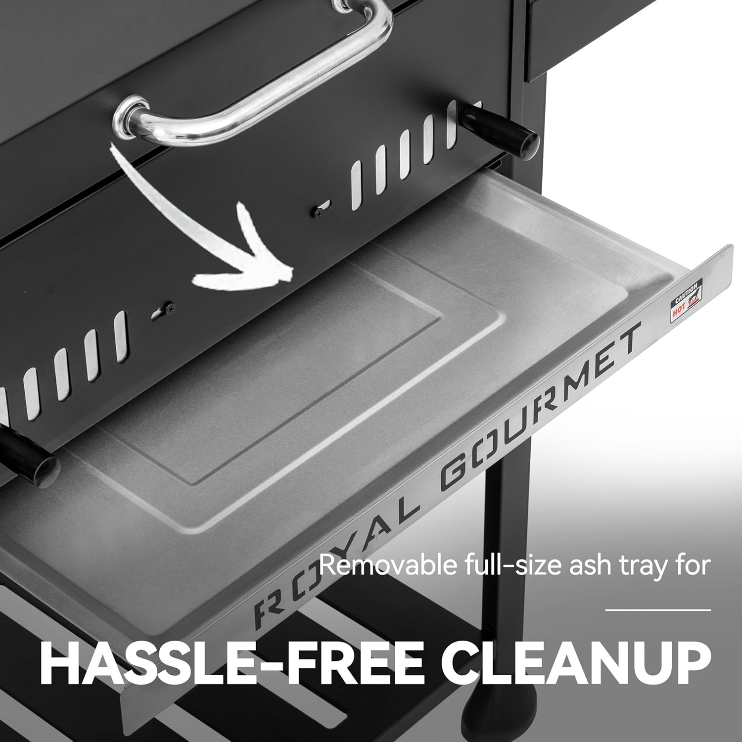 • Hassle-free Cleanup: A full-sized galvanized ash tray collects ashes efficiently; please pull out the ash tray after it cools down to avoid burns