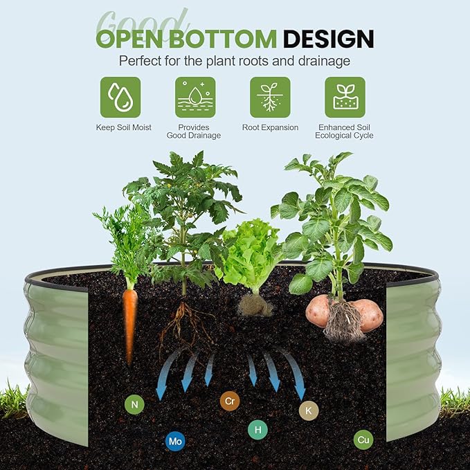 • 【Open Bottom Design】 The above ground garden bed feature an open base, promoting excellent drainage and aeration. This allows roots to grow freely, creating an ideal environment for healthy growth and abundant harvests.