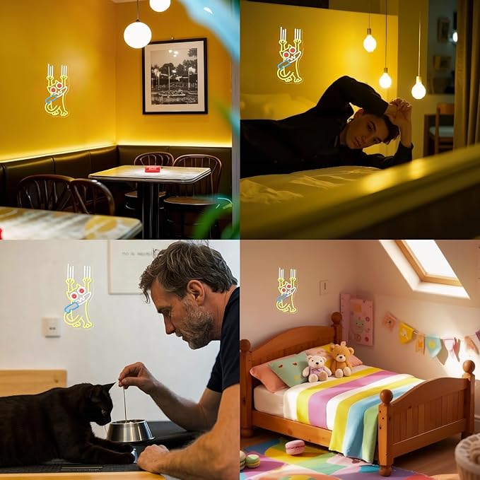 • UNIQUE DESIGN:Charming neon lights to decorate your room, cute and funny cats with horrified expressions with knives and forks to create your space, it creates a unique style and makes the room colorful!