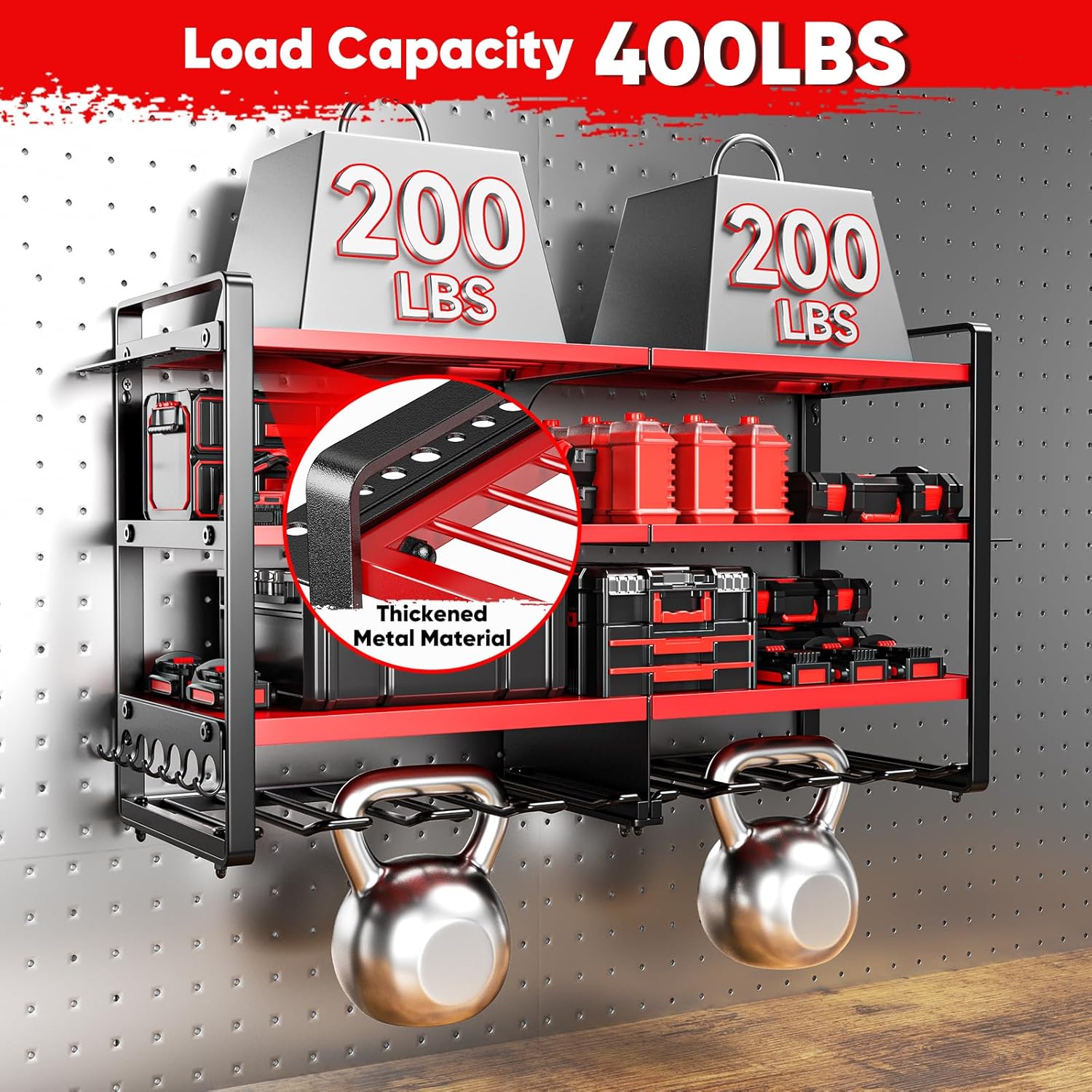 • Holds Up to 400 Pounds: Built from thick industrial-strength steel, our tool organizers and storage is engineered for maximum strength and stability. The rugged frame won’t warp, crack, or collapse under pressure. With a total load capacity of 400 pounds, it easily supports everything from compact drills to heavy toolboxes—giving you peace of mind and rock-solid performance.