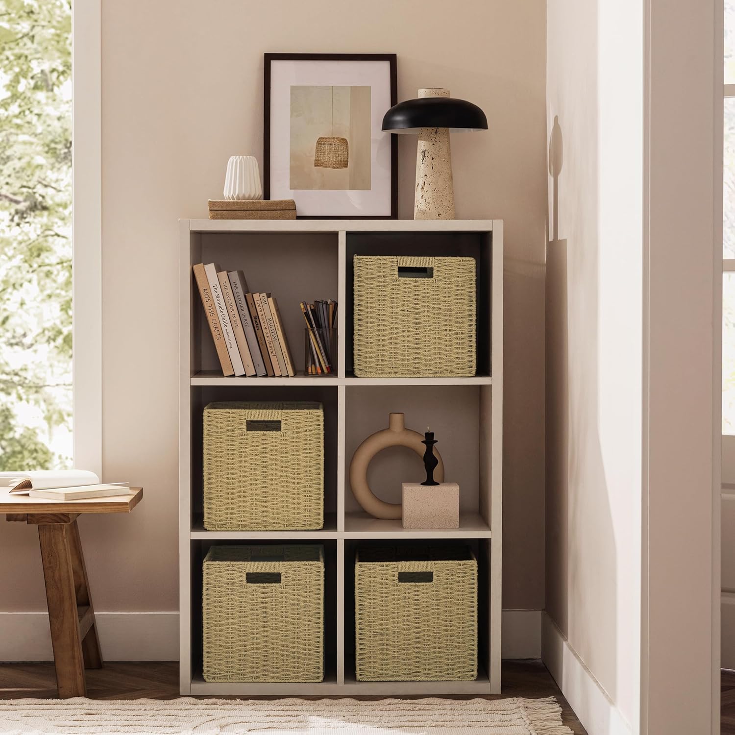UBBCARE 2 Pack Wicker Basket,11L×11H×10.5W inch Woven Paper Rope Storage Baskets for Shelves, Foldable Cube Storage bin with Handle, Storage Basket for Organizing & Decor, Natural