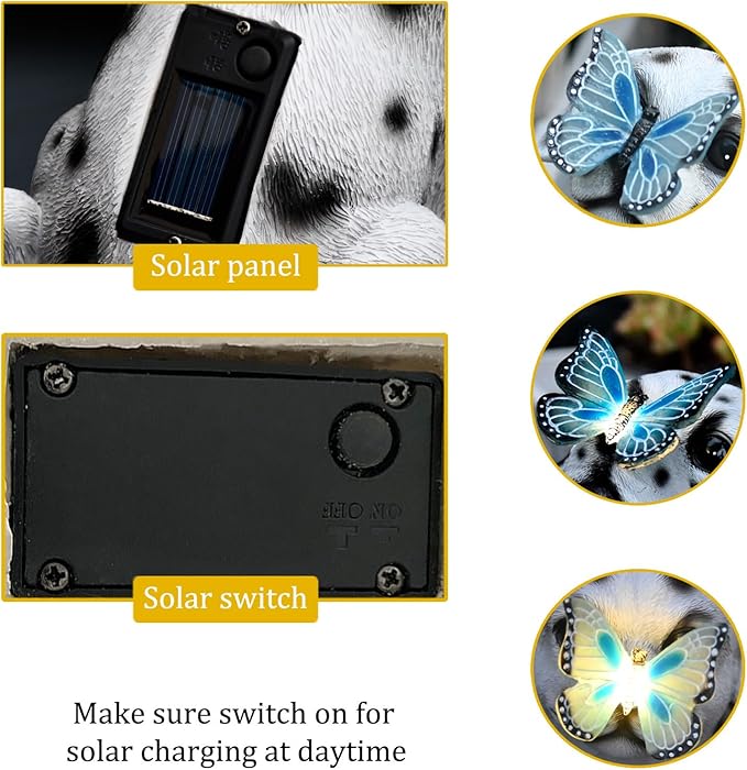 • ▶ Solar Light - Dog garden decor with solar powered, easy to use, can automatically charge the solar energy, light up at night.Energy Efficiency & smart models:with solar-powered, energy saving and energy efficiency.
