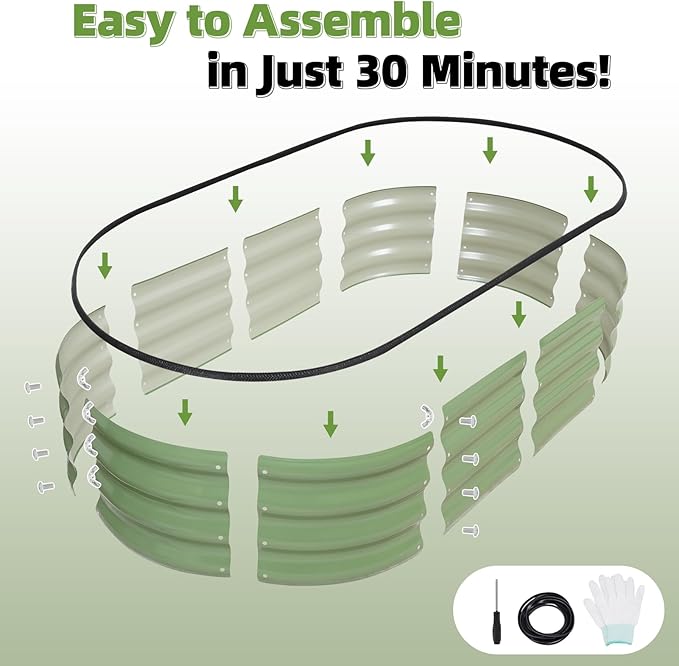 • Durable & Corrosion-Resistant Construction: Planter boxes crafted from 0.7mm thickness galvanized steel with anti-rust spray coating. The oval joint design distributes pressure evenly, outperforming standard 0.3mm beds for superior durability, weather resistance, and multiyear reuse