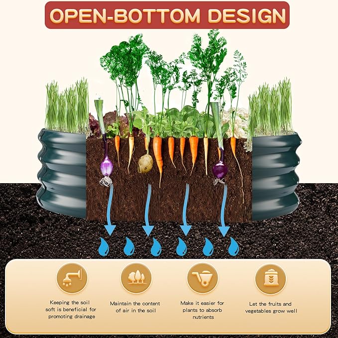 • 【OPEN BOTTOM】: This painted raised garden beds have open bottom design,which promotes healthy drainage and allows for deeper root growth, ensuring your plants thrive.