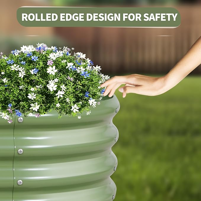 • 【Upgrade Quality & Structure 】The raised garden bed is made of thick galvanized metal with a surface spray coating, which is rust proof and anti-corrosion. Can be used for a long time. The oval design ensures uniform surface force and prevents deformation. More durable than other raised planter box, becoming a good helper for your garden