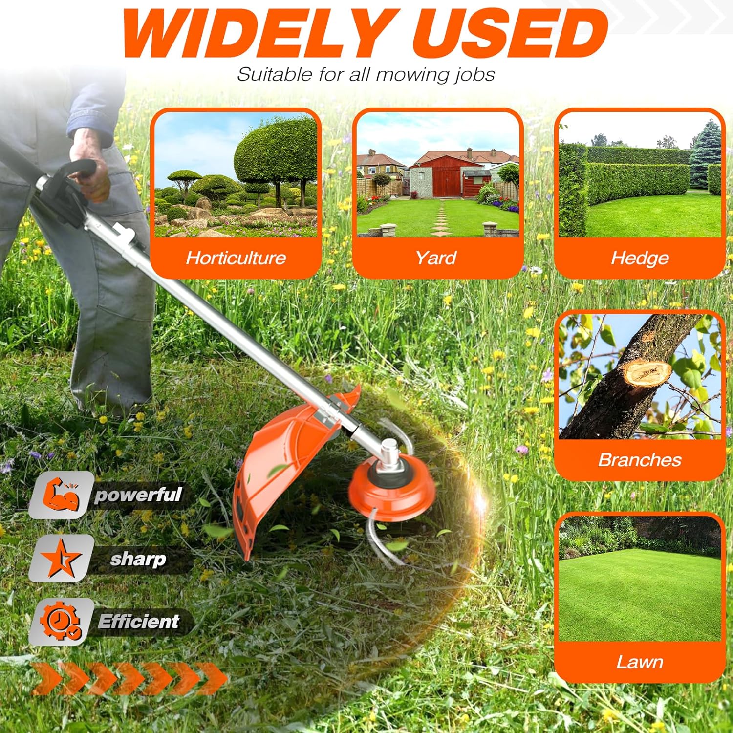 • Powerful Enginer:The gas string trimmers more power and run time than electric or battery-powered trimmers,which makes them suitable for larger yards or heavy-duty trimming jobs.It allow you to make Multi-Angle adjustment, ideal tool to trim your hedges down to size,head that rotates from 90 degrees and is fully adjustable with variable cutting angles