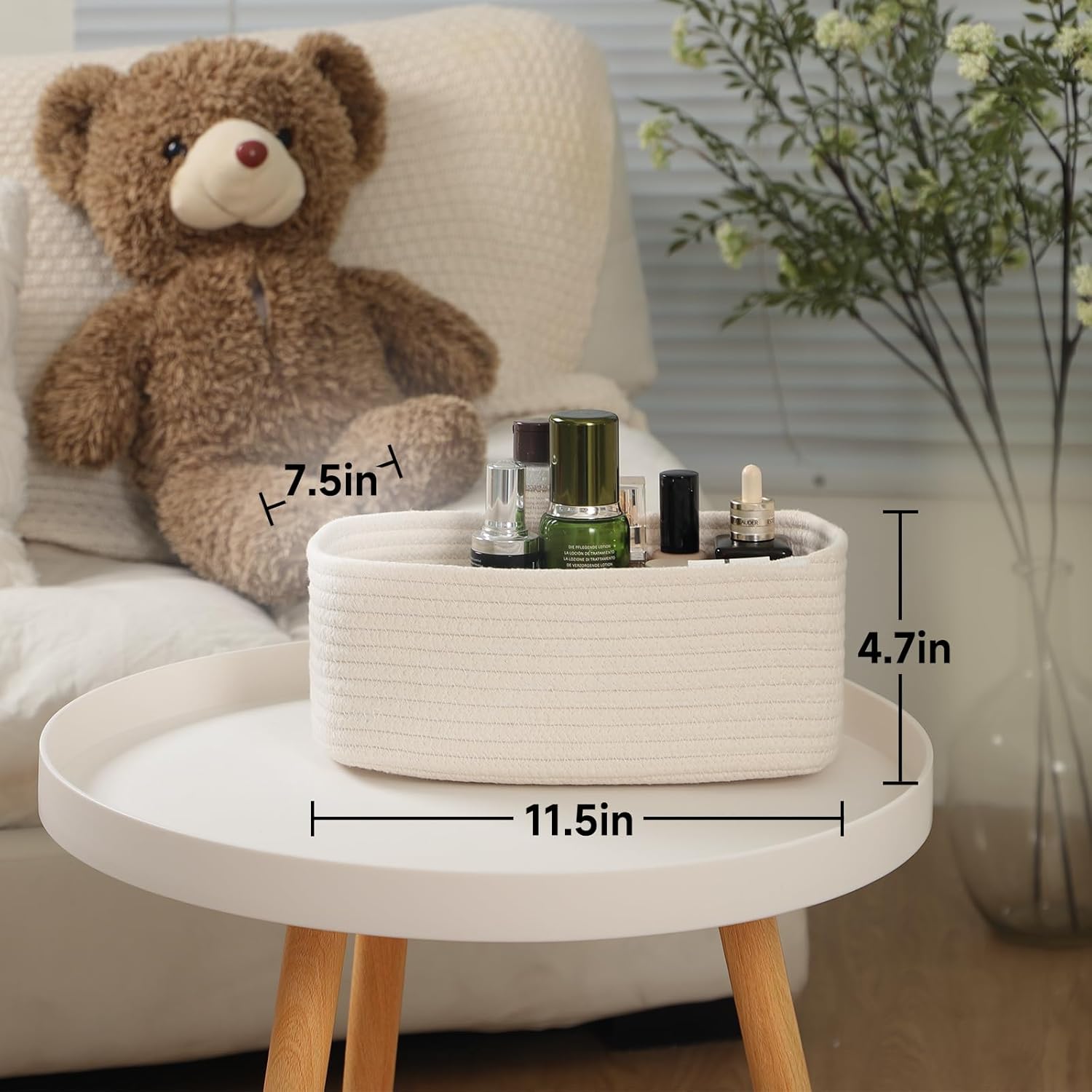 • [ Compact Size ]: With dimensions of 11.5 x 7.5 x 4.7 inches, this rectangular basket is designed to accommodate most small household items. Each set of 4 pieces can be sorted to store cosmetics, jewelry, baby diapers, towels, remote controls, keys, credit cards, wallets, charging cables, toys, snacks, paper towels, and more