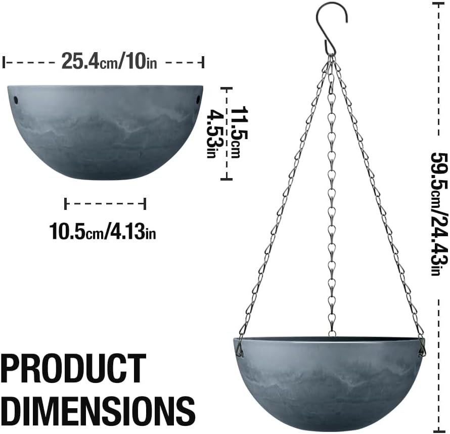 • 2 in 1 Planter pot: Our 10 inch marble hanging flower pots can be hung or placed. Installing the chain hanger is simple, just slide it in from the hole. After removing the metal hanging chain, you can take care of your plants or place them on the table as a tabletop flower pot.