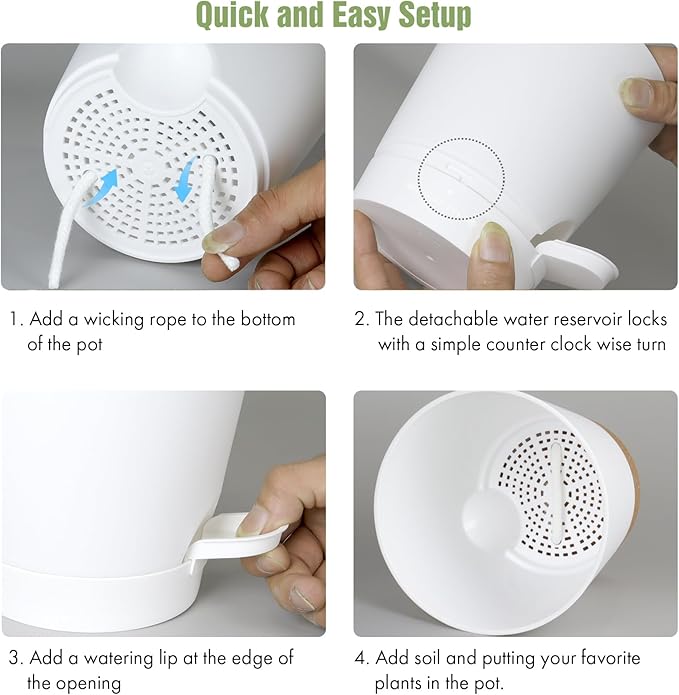 • 【Self-Watering Design】These 4 inch self watering pots for indoor plants are designed with a wick rope that draws water from the reservoir at the bottom. The set of 6 plastic self watering planter provides an optimal air circulation system for plant roots