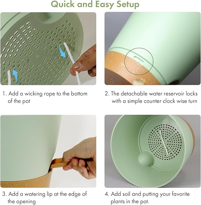 • 【Self-Watering Design】These self watering pots for indoor plants are designed with a wick rope that draws water from the reservoir at the bottom. The set of 6 plastic self watering planter provides an optimal air circulation system for plant roots