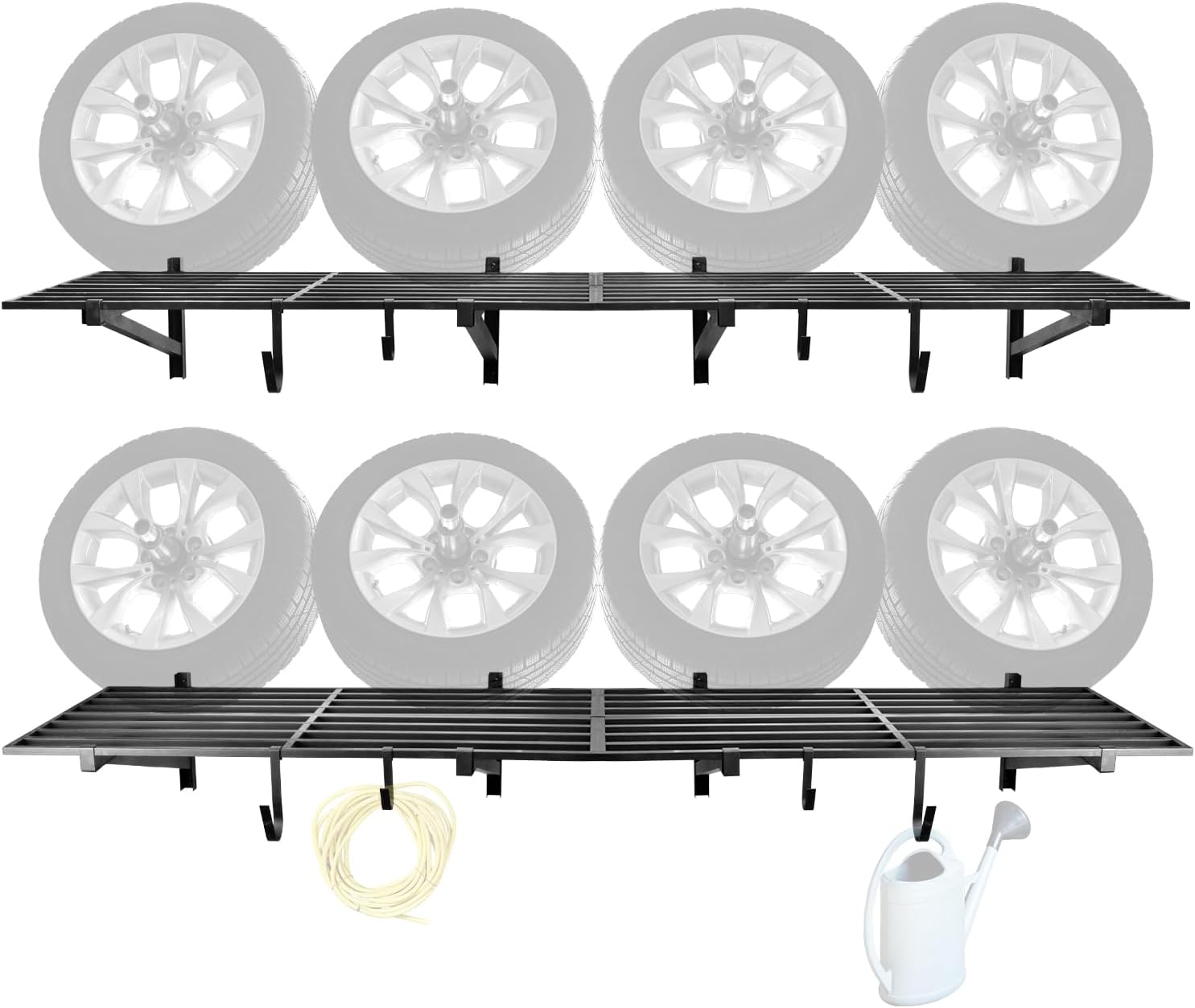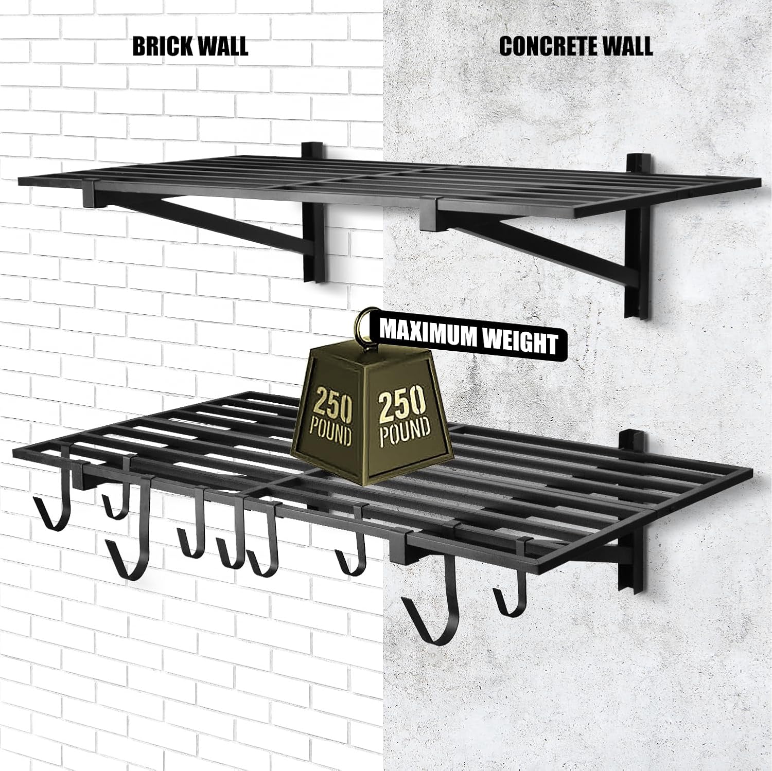 • SAVE SPACE IN THE HOME LOGISTICS: The wall mount rack can help your garage floor clean and tidy, make your garage less crowded, this garage wall shelf also comes with multiple metal hooks, can help you save a lot of space in the garage.