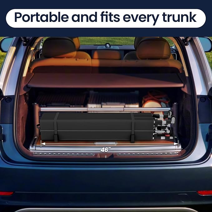 • Compact Packaging with Easy-Moving Wheels: Designed for convenience, this canopy tent 10x10 folds into a compact size(46”x8.5”x8.5”), fitting easily into most car trunks. The detachable rubber wheels make transportation a breeze, ideal for parties, BBQs, camping, market, or beach shade