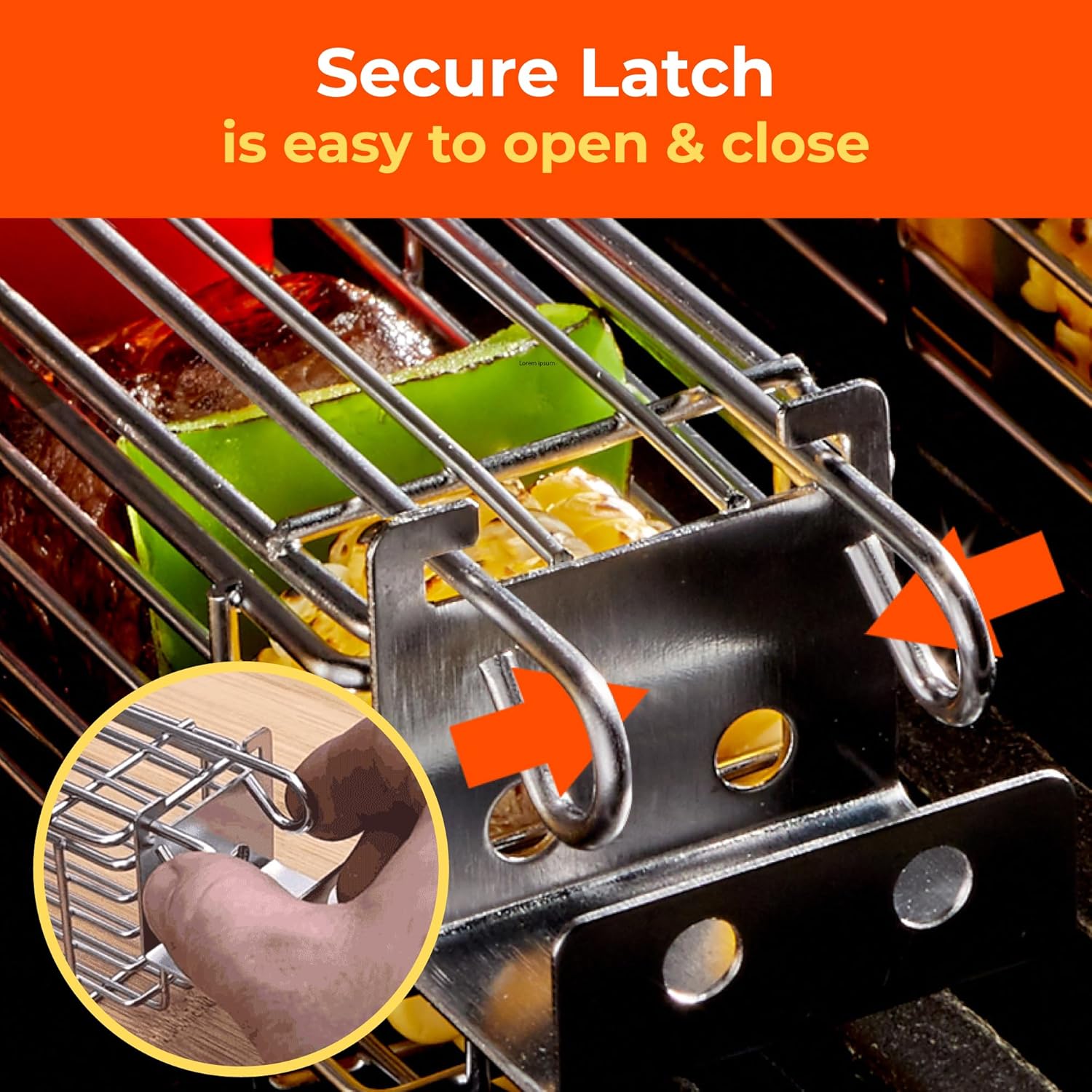 • Roomy, Even Cooking - Each basket measures 12x2x2 inches—big enough for thick veggie cuts, shrimp, or salmon, and keeps food from falling through the grill.