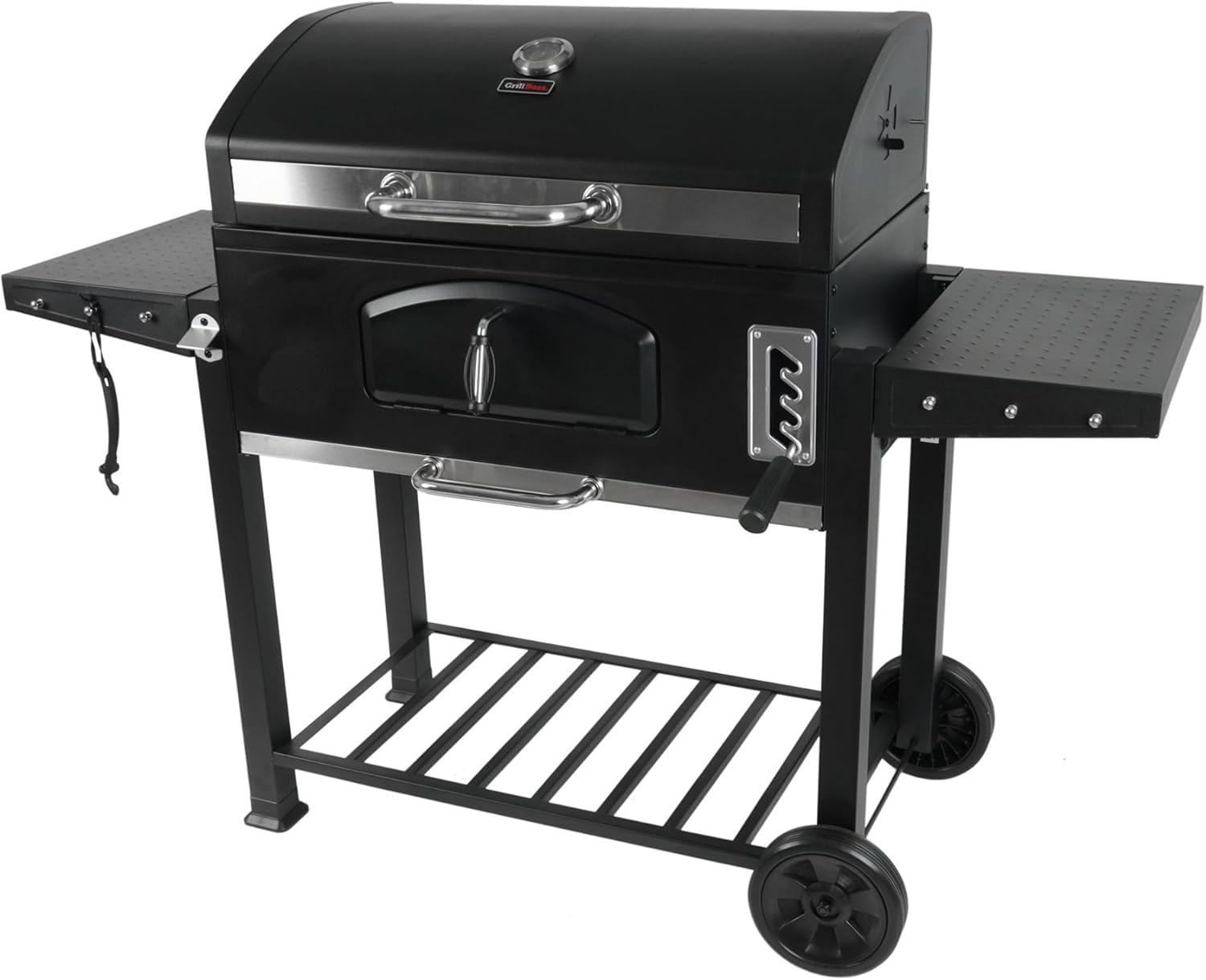 • Convenient Features: Equipped with front access door for quick and easy charcoal refills, side shelves, steel lid handle, transport wheels, and more for all your grilling needs