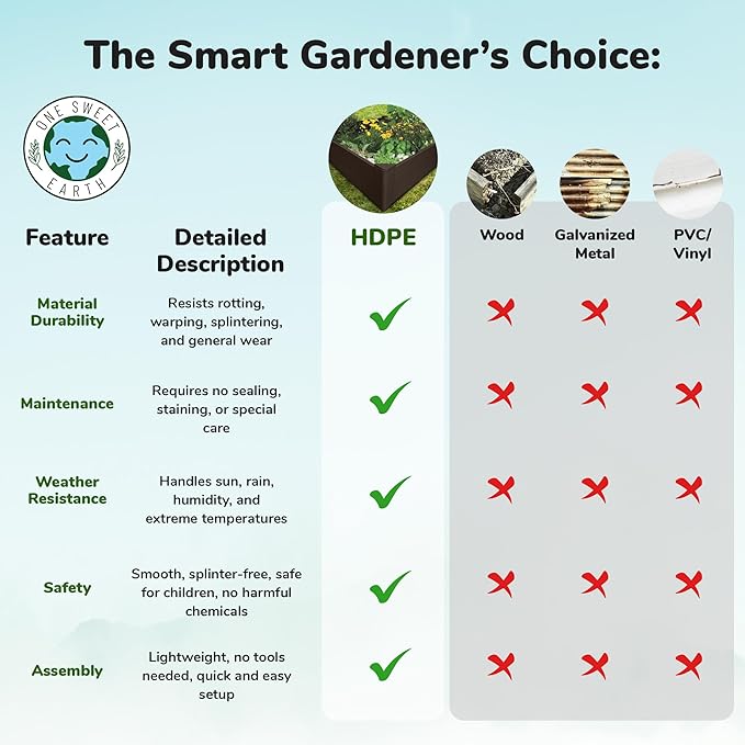 • DURABLE & WEATHER-RESISTANT DESIGN: Constructed from heavy-duty HDPE plastic, this raised garden bed resists warping, cracking, and rotting, offering season-long durability. No rusting, no splinters, and no painting—just dependable outdoor gardening season after season.