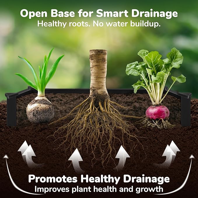 • SAFE, ECO-FRIENDLY GARDENING: Made from non-toxic, BPA-free plastic, this raised bed is 100% recyclable, offering a sustainable option for growing your herbs, vegetables, and flowers. Enjoy peace of mind knowing your garden is safe for both plants and the planet.