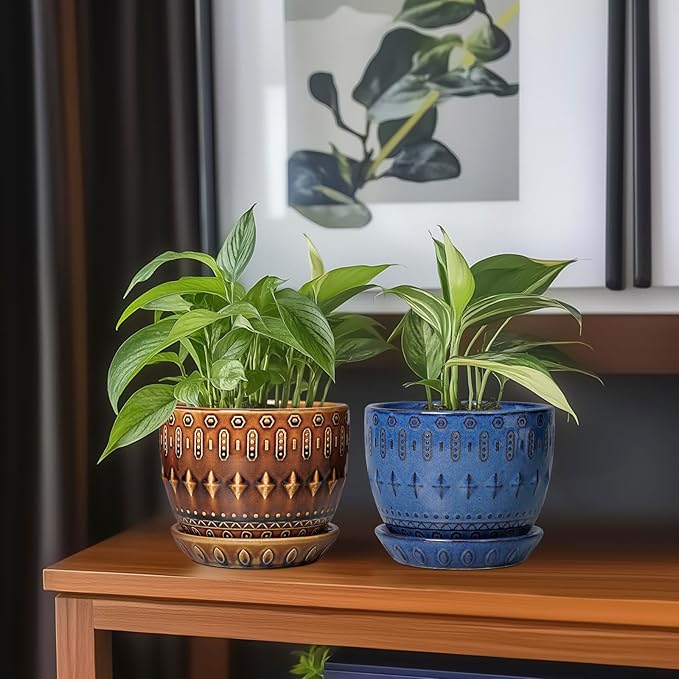 • Ideal Size of Indoor Plant Pot: Each ceramic planter is 5.5 D x 4.7 H, which can provide enough space for your plants to thrive. One package includes brown planter, ceramic tray and mesh