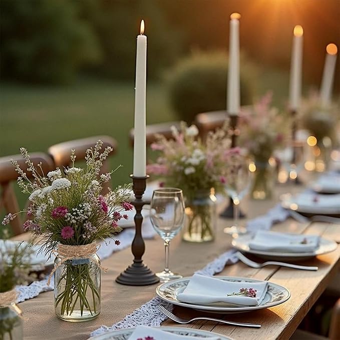 • 🏺 Commercial-Grade Bulk Vases:6-pack vintage glass centerpiece vases designed for weddings, banquets, and catering businesses. Clear mason jars offer reusable rustic charm for floral arrangements or candlelit tables.