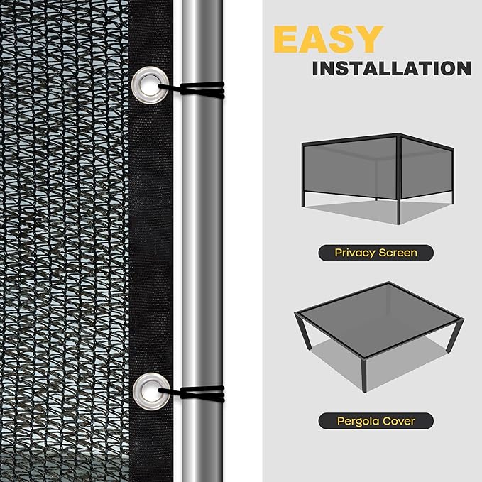 • Easy to Set UP: Equipped with aluminum grommets at the corners and along the four sides, our shade cloth is straightforward to install over pergolas, skylights, kennels for shade, or hang on porch and balcony railings for privacy.