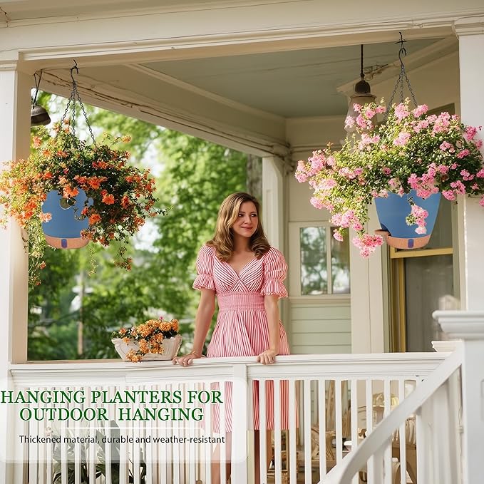 • 【Healthy Roots, Happy Plants】Our hanging planters feature GRID DRAINAGE HOLES at the bottom to quickly drain excess water and prevent standing water, while side ventilation ports maintain airflow around roots. The patented NO-SPILL WATERING LIP allows precise watering even in hard-to-reach hanging positions. No more messy water stains - just healthier plants that thrive!"