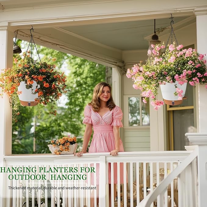 • 【Healthy Roots, Happy Plants】Our hanging planters feature GRID DRAINAGE HOLES at the bottom to quickly drain excess water and prevent standing water, while side ventilation ports maintain airflow around roots. The patented NO-SPILL WATERING LIP allows precise watering even in hard-to-reach hanging positions. No more messy water stains - just healthier plants that thrive!"