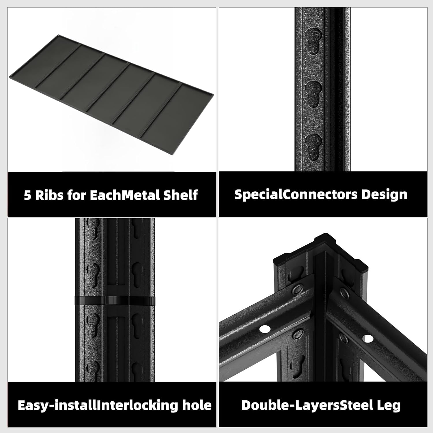 • 6 Tier Metal Shelf Unit: The garage shelves are constructed with reinforced, double-layered uprights that deliver exceptional load-bearing capacity, ensuring long-term use and stability. Each shelf incorporates 5 reinforcing rods and 1 support ribs at the back, enhancing stability and ensuring even weight distribution for the safe storage of heavy items.