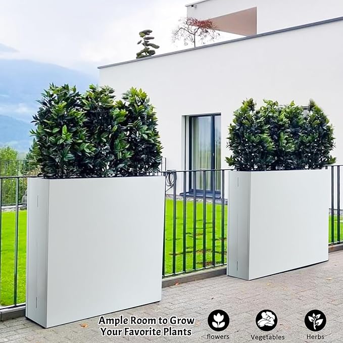 • 【High‑Quality Material】:The White Rectangular Planter Box Made of thick galvanized steel with a high‑temperature coating, this flower box is antirust and anti-corrosion process, and built to withstand harsh weather, keeping its beauty and durability over time.