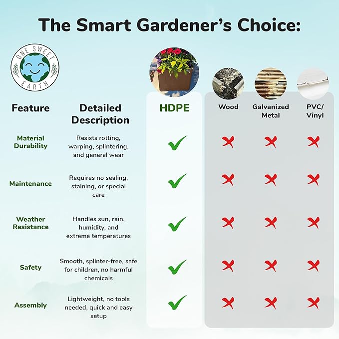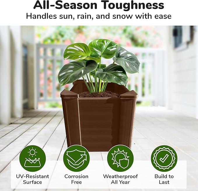 • DURABLE & WEATHER-RESISTANT DESIGN: Constructed from heavy-duty HDPE plastic, this raised garden bed resists warping, cracking, and rotting, offering season-long durability. No rusting, no splinters, and no painting—just dependable outdoor gardening season after season.