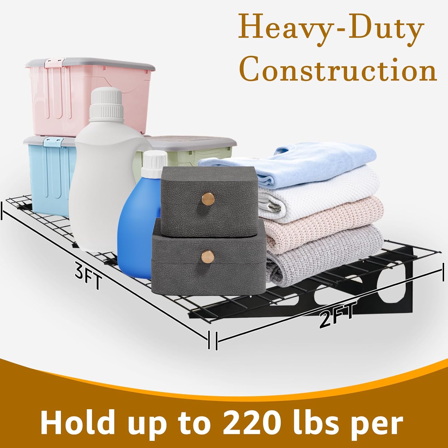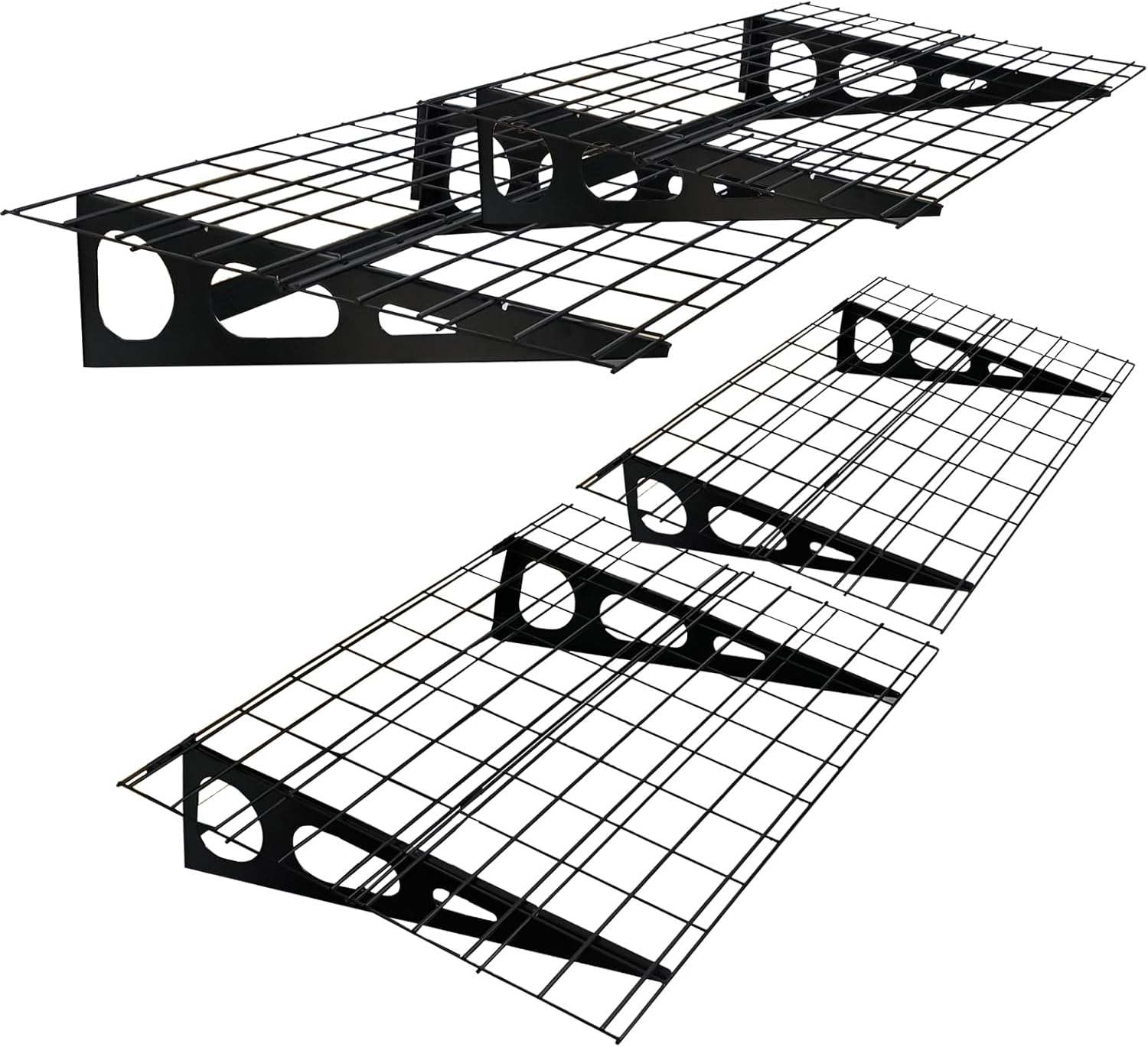• All Components: 4PCS Right Support frame/ 4PCS Left Support frame, 8PCS Wire grids (1*3FT), 24 PCS Screw. Crafted from resilient heavy-duty steel, the garage wall shelves are built to endure