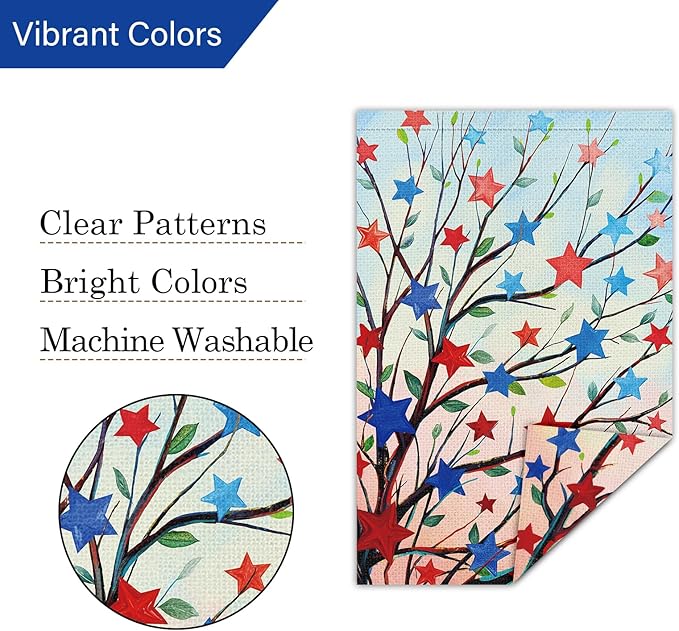 • Material: Our Independence Day garden flags are made from high-quality, washable Spun Polyester, with double-stitched edges to ensure long-lasting quality. Designed to withstand the elements, this flag will maintain its vibrant colors and crisp details all season long