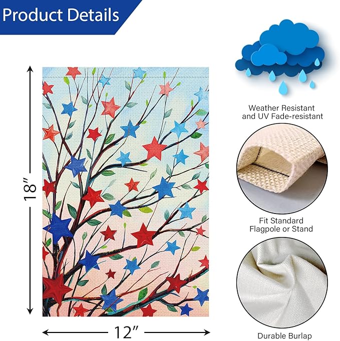 • Size: This vibrant Independence Day garden flag measures 12x18 inches. The flag stand and pole are not included, but it features a convenient sleeve at the top for easy placement on any standard flagpole