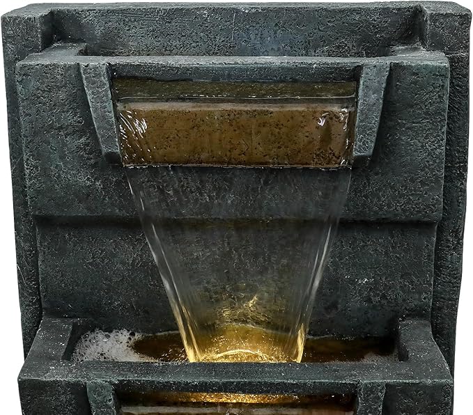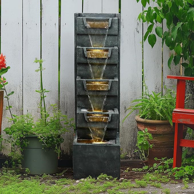SunJet 4-Tiers Modern Cascading Indoor/Outdoor Fountains and Waterfalls with LED Lights - 39.3" High Large Water Fountain for Garden, Patio, Yard, and Deck Decor - Relaxing Water Fountain Outdoor