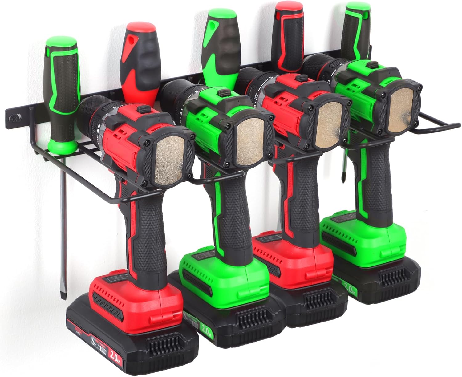 • A Little More Storage: This power tool organizer wall mount can hold 4 cordless drills or other tools, with extra slots allowing you to organize more screwdrivers