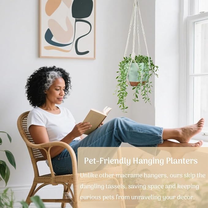 • Minimalist Boho Decor – Create a floating indoor jungle in your home, balcony, or patio. An ideal gift for plant lovers, housewarmings, weddings, or holidays. Unlike flimsy tasseled hangers, our minimalist design prevents pets from chewing and saves space.