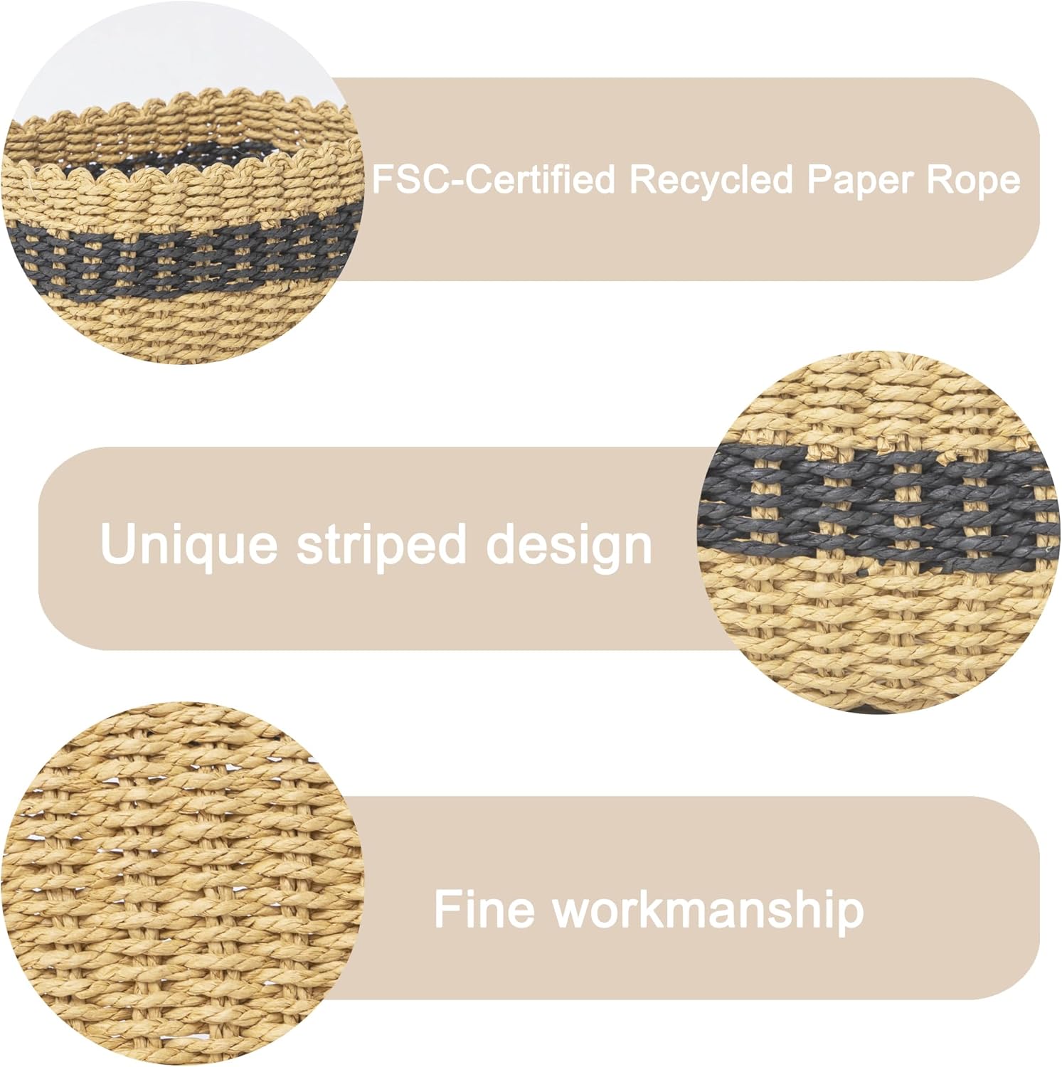 Small baskets for Organizing,Cute woven Storage basket with recycled paper rope for Shelves Bathroom,Little decorative basket,Set of 3 (Desert&Black)