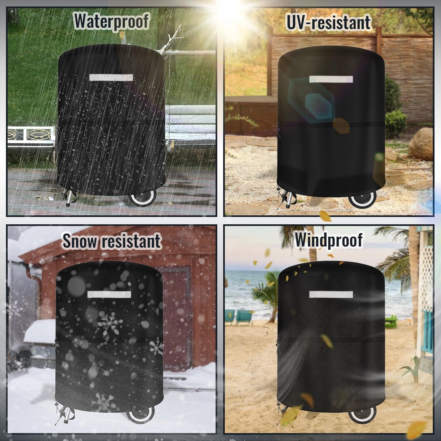 • Sized for 22 inch Charcoal Kettle Grill:The charcoal grill cover measures 26.5"W x 26.5"D x 36"H, this griddle cover fits for Weber 22 Inch Charcoal Kettle grills, 22 Inch round smokers grill,22 Inch Jumbo Joe charcoal grill and most Weber 22" charcoal grill models.Universal enough to cover most of the standard vertical smokers
