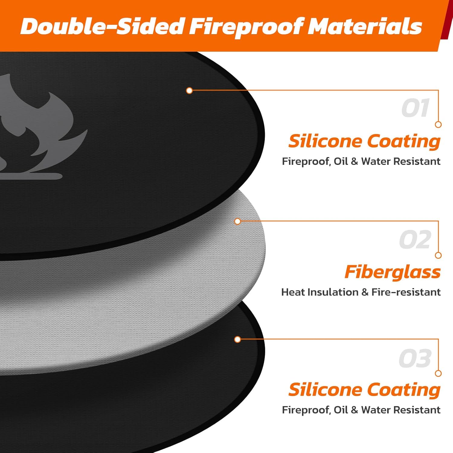 • 【Double-Sided Fireproof & Heat-Resistant】Crafted from durable fiberglass with double-sided silicone coating, this fire pit mat withstands extreme temperatures up to 2000°F. The flame-retardant material ensures no curling, cracking, or tearing, even under prolonged high-heat exposure.