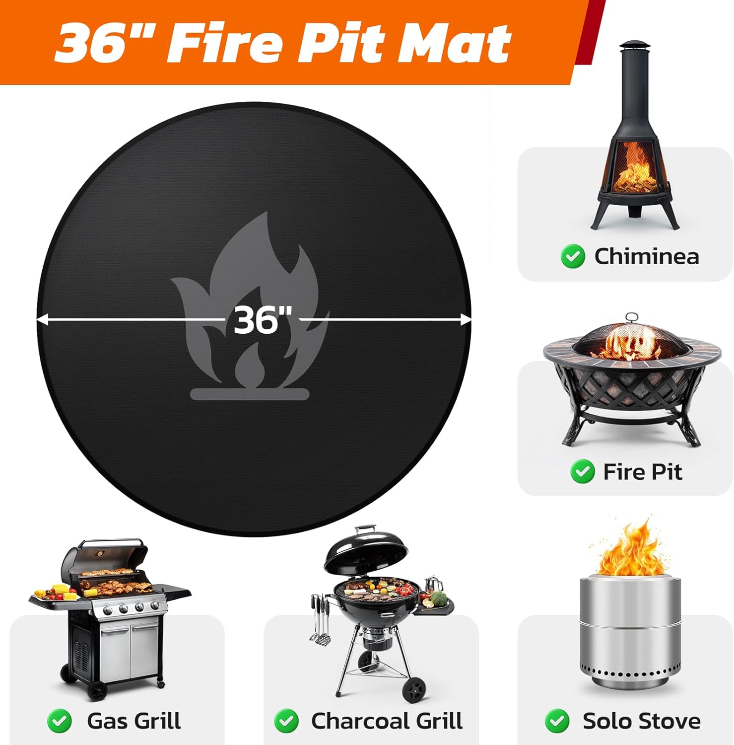 36" Fire Pit Mat for Solo Stove Bonfire: Round Fireproof Under Grill Mat Heat Insulated Indoor Fireplace Pad Protector for Decks, Patios, Grass, BBQ Smoker, Portable Reusable Oil-Proof and Waterproof