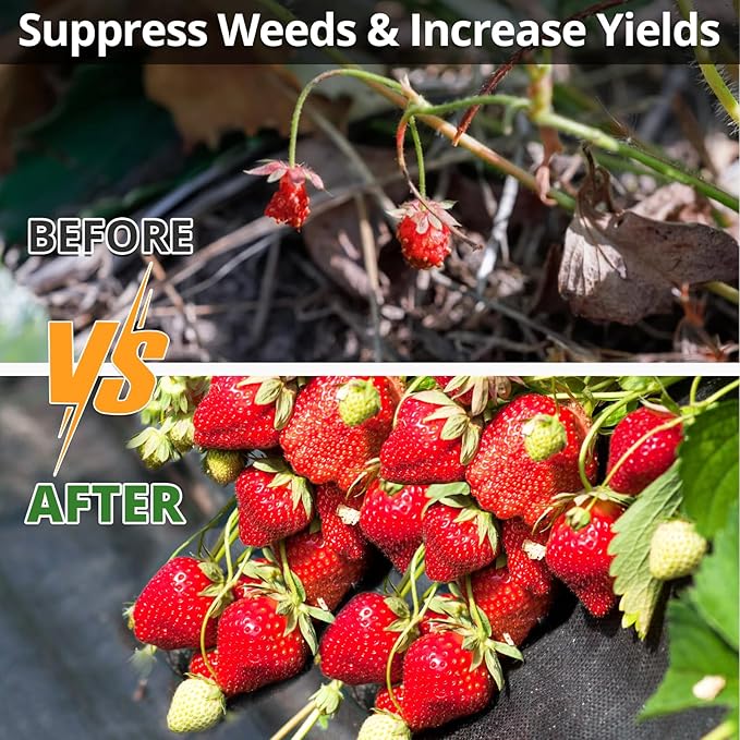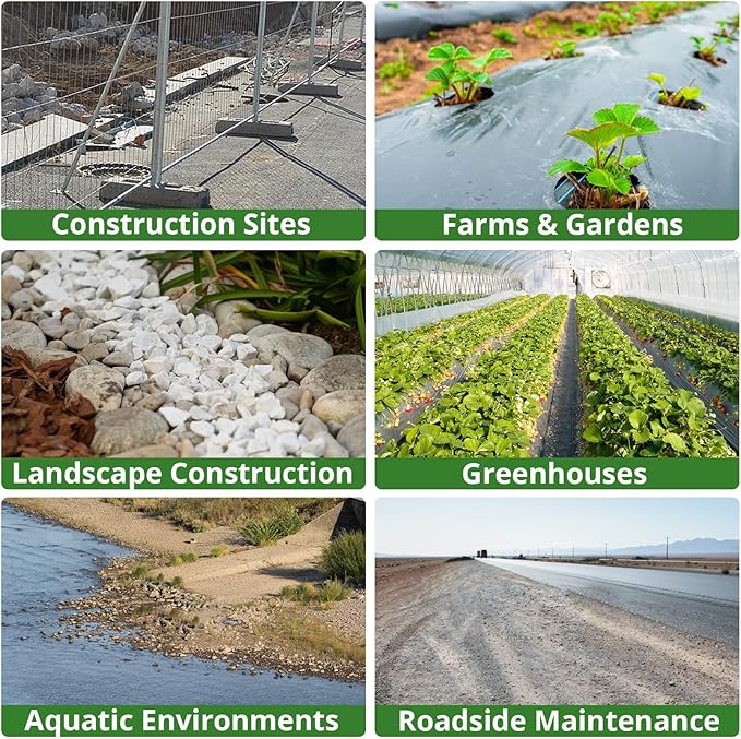 • 【SUSTAINABLE & POLLUTION-FREE】We care about the environment, that’s why we designed our reusable landscape fabric. By utilizing our weed barrier fabrics, you can significantly decrease reliance on herbicides, fostering a greener and more sustainable approach to gardening.