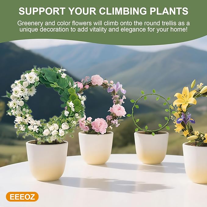 • 【Easy No-Tools Assembly】 - trellis for climbing plants indoor, simply push the circular trellises into soil/pots and attach plants with included ties - sets up in seconds
