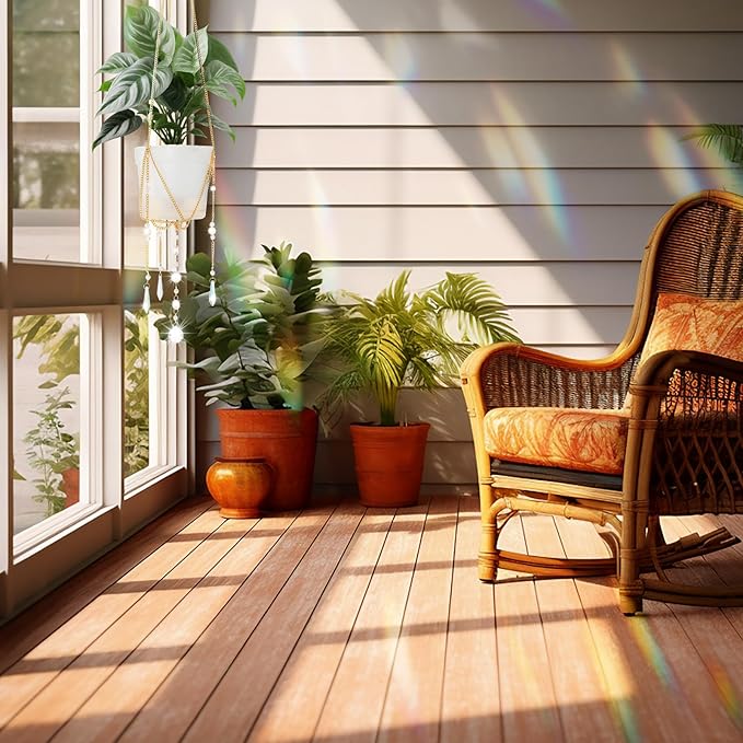 • Indoor Decor: transform any room with the Sun Catcher Plant Hanger; This beaded plant hanger features a colorful glass sun catcher that creates a dazzling rainbow effect, adding vibrant beauty to your space; Use it as the hanging plant holder to brighten up your home