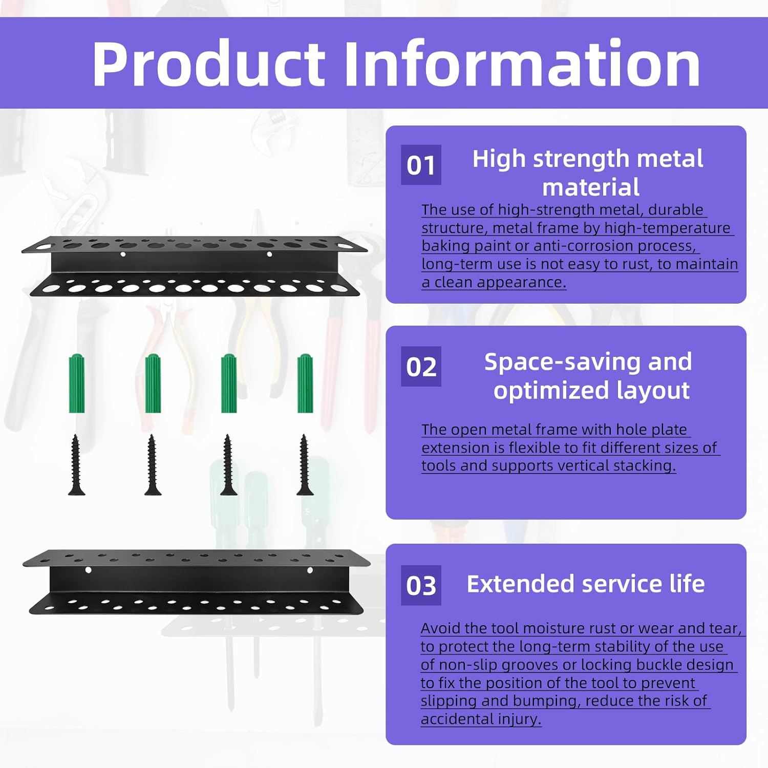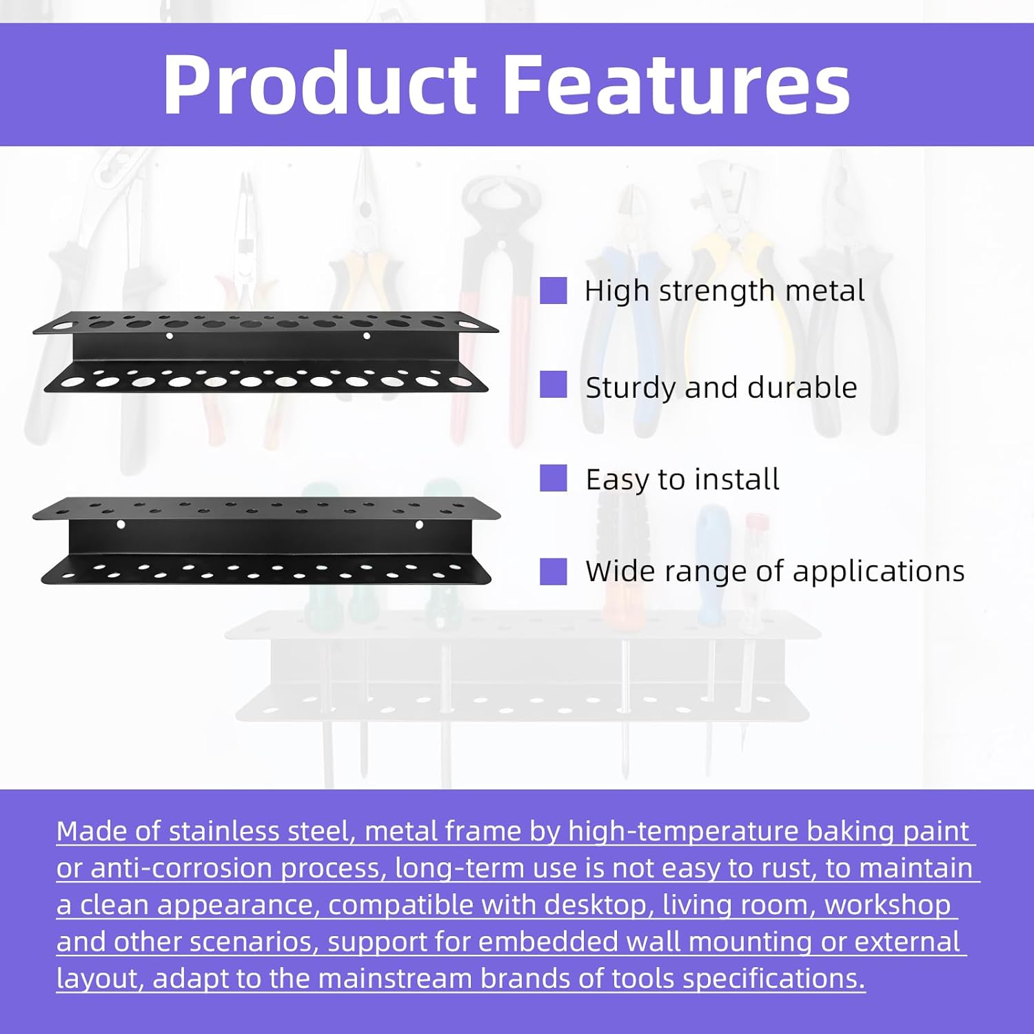 • Quick & Easy Installation – Mount securely in minutes with pre-drilled holes (compatible with screws or adhesive strips) to save wall space and keep tools within reach