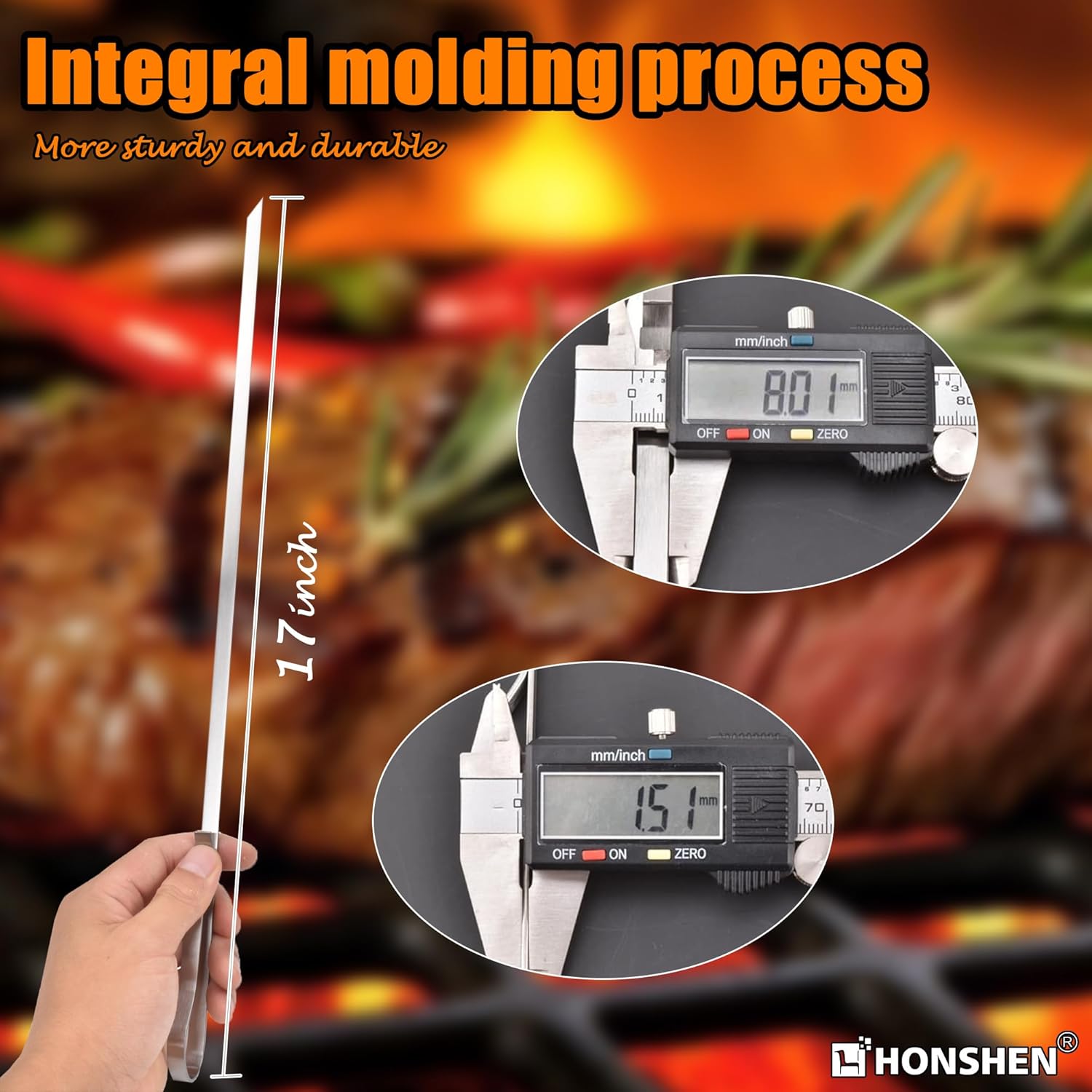 • 17''SUPER LONG LENGTH: Tired of burning your hands and arms on flimsy disposable skewers? Then switch to a longer and safer zero-waste alternative! Its length of 17 inches accommodates 6 to 8 chunks of meat or other food ingredients, ensuring your food cooks - not your hands;