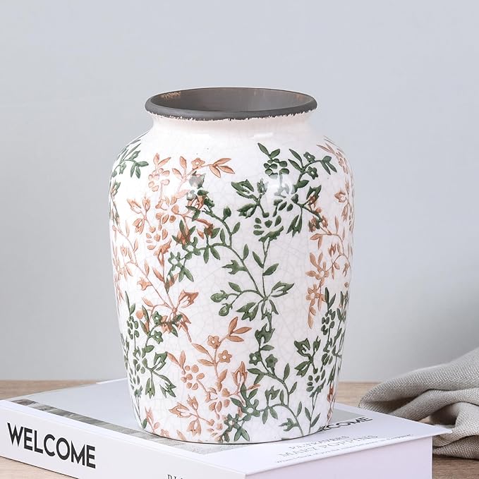 • Rustic flower vase: This porcelain vases measures approximately: 8.3 inches high, 5.5 inches in diameter/21*14 cm, can be used to display fresh or artificial flowers on shelves, mantels, tables or other surfaces, adding charm to living rooms, dining rooms, bedrooms, etc.
