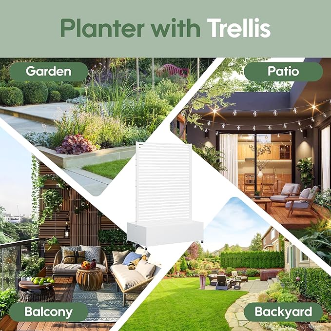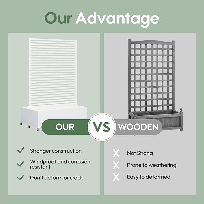 • Versatile Design--This metal planter with trellis serves triple purposes as an elevated garden bed for flowers/plants, a sturdy trellis for climbing flora, or a stylish privacy screen to enhance outdoor living spaces. Its adaptable structure makes it the ultimate gardening solution for diverse needs.